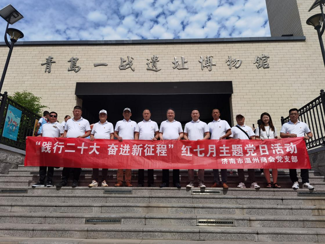 为庆祝中国共产党成立102周年,深入贯彻落实党的二十大精神,引导广大党员坚定理想信念,在新时代的征程中发挥好先锋模范作用,7月15日至16日,济南市温州商会党支部组织党员一行,赴青岛开展“践行二十大、奋进新征程”红七月主题党日活动,先后参观了青岛海军博物馆和青岛“一战”遗址博物馆等。党支部书记陈朝顺,副书记林法建,组织委员陈昌威,宣传委员李希解,纪检委员陈海东,青联委员唐诗意,常务副会长兼秘书长温作民,常务副会长冯忠铠、虞世光等十余名党员参加了本次活动,会长陈德放、常务副会长谢尚旺应邀参加。
