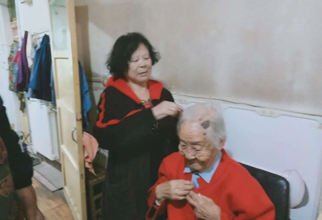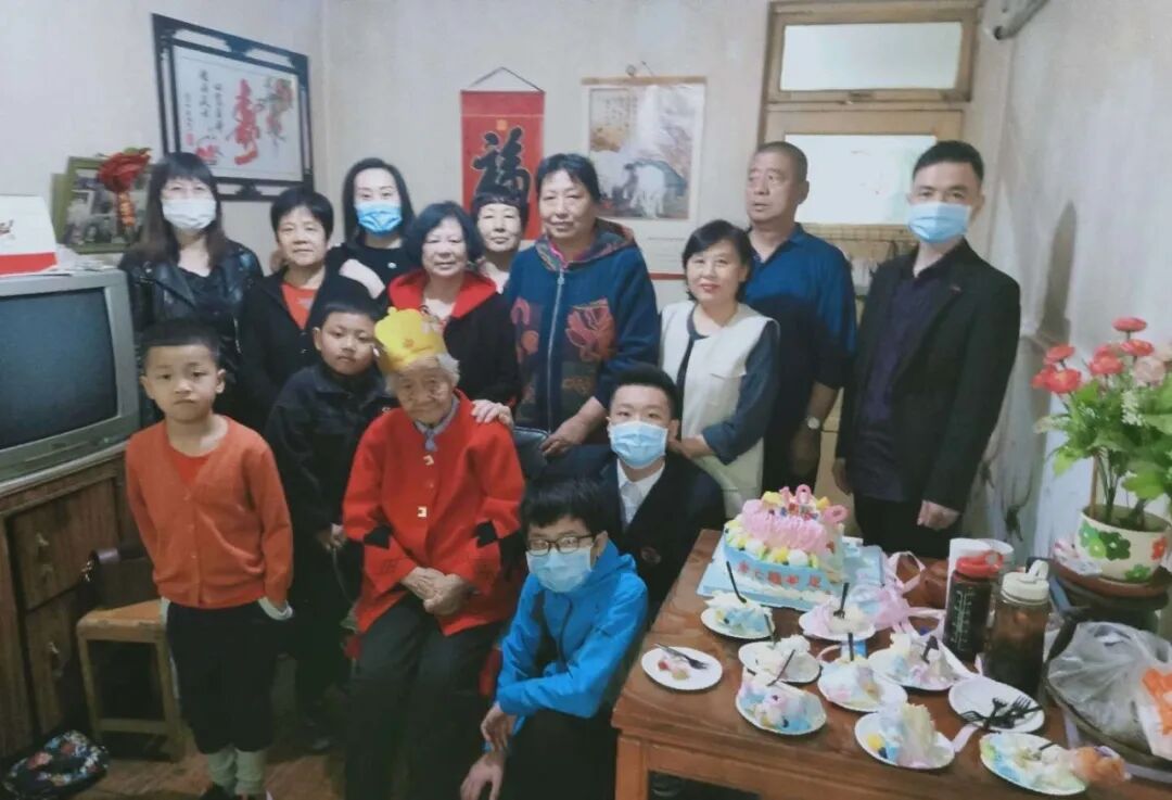冯先生爷俩的善举也影响到了他身边的朋友。每到逢年过节,大家都会来到老人家,除了礼品外还会给老人留下点钱。杲奶奶是4月7日的生日,本来大家是要来给老人过生日的。可当时的情况是不能聚集,这不情况好转,趁着五一节日期间,他们为老人补办了这场生日。俩位常来照顾老人的邻居老大姐为老人穿上新买来的大红衣服,梳洗整理一番,孩子们则点上蜡烛,大家一起唱起生日快乐歌。