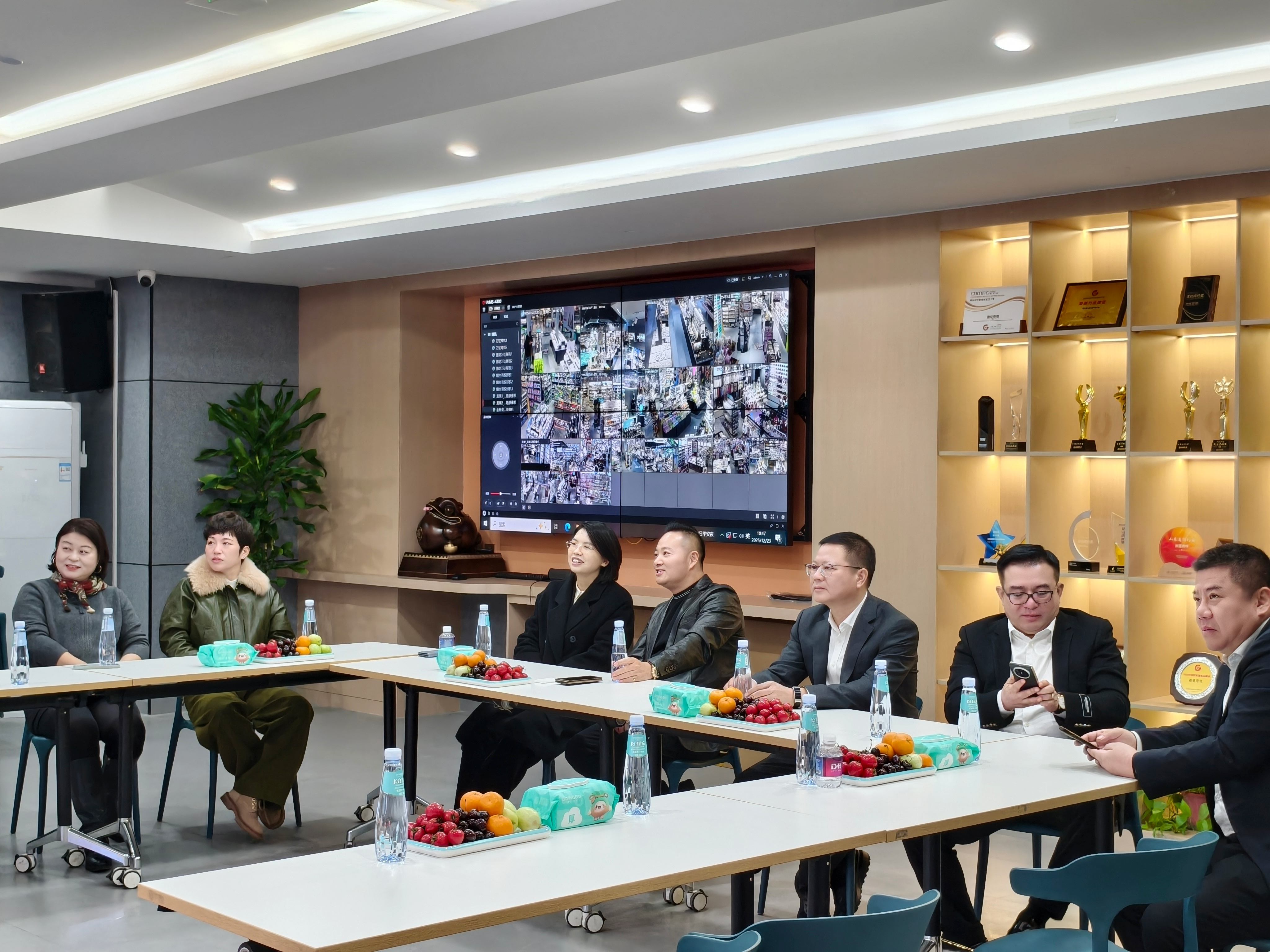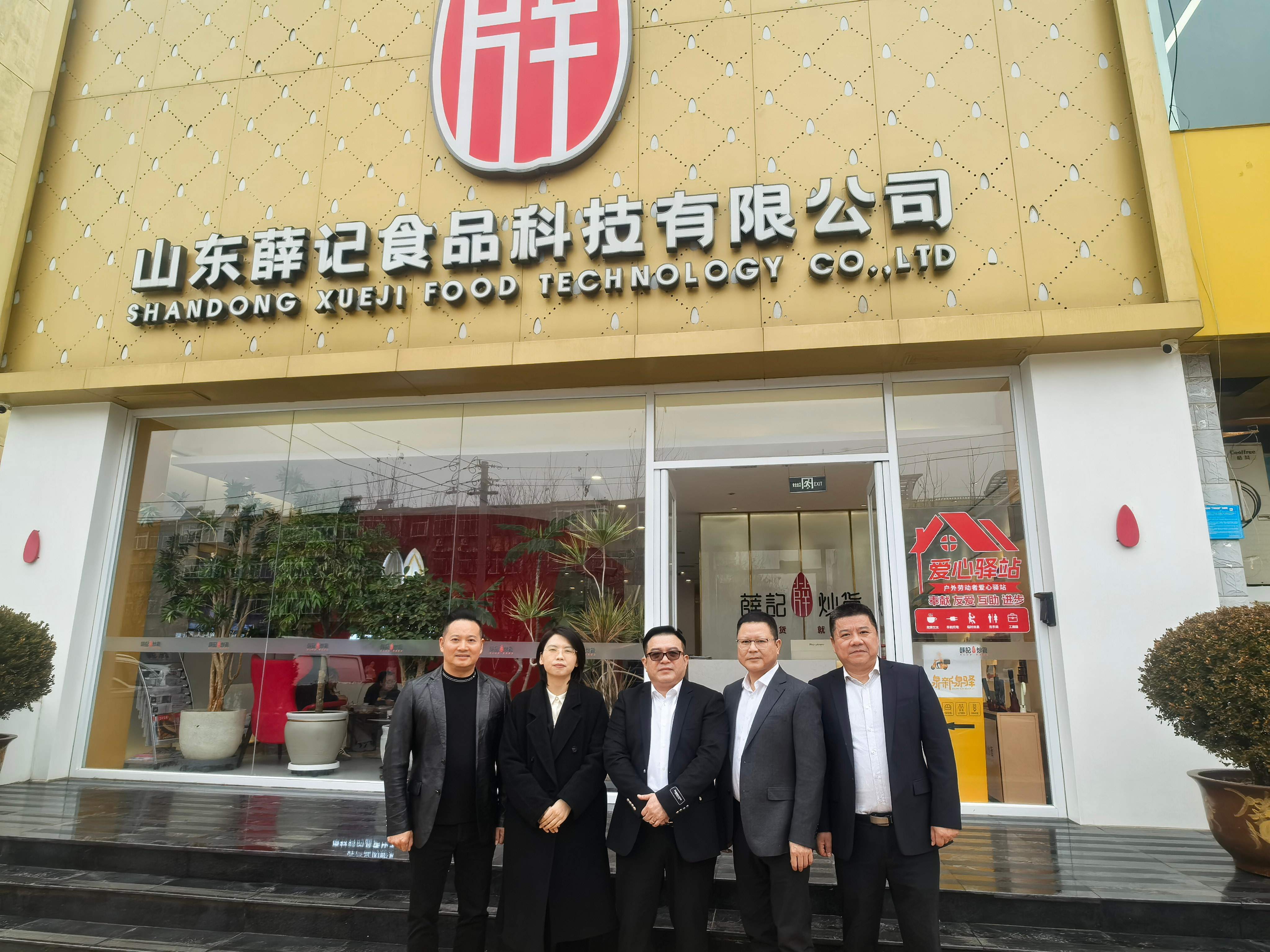 2025年12月23日,温州市永嘉县副县长陈文平、县政协副主席汪长新、县投促中心主任王琼一行到访山东遇见兜兜品牌运营有限公司、山东薛记食品科技有限公司、君博牛业和牛全产业链项目(餐饮版块)黑牛先生体验店参观考察。济南市温州商会执行会长兼党支部书记陈朝顺、常务副会长兼秘书长温作民,山东省温州商会常务副会长兼执行秘书长陈国锋等陪同座谈考察。