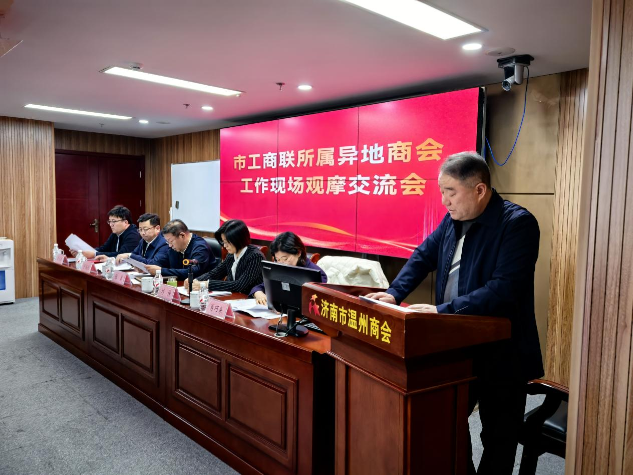 会议强调,市工商联所属异地商会要提高政治站位,深刻认识新时代异地商会建设的意义,把学习好贯彻好二十届四中全会精神作为当前和今后一个时期的重大政治任务,把政治建设摆在首位,加强思想引领;要聚焦规范提升,以精准举措筑牢商会发展根基,通过分级分类指导实现精准提升,以“双服务 双提升”激活发展动能,对照“四好”标准筑牢组织基础,强化党建引领与制度建设,推动商会专业化发展;要主动担当作为,在强省会建设中展现新风采,要当好政策宣讲“扩音器”、政企沟通“连心桥”、双招双引“生力军”、回报社会“践行者”与文化交融“促进者”,积极宣传济南发展机遇,反映企业诉求,引荐优质资源,参与公益事业,切实增强凝聚力与执行力,建设“民营经济人士之家”。