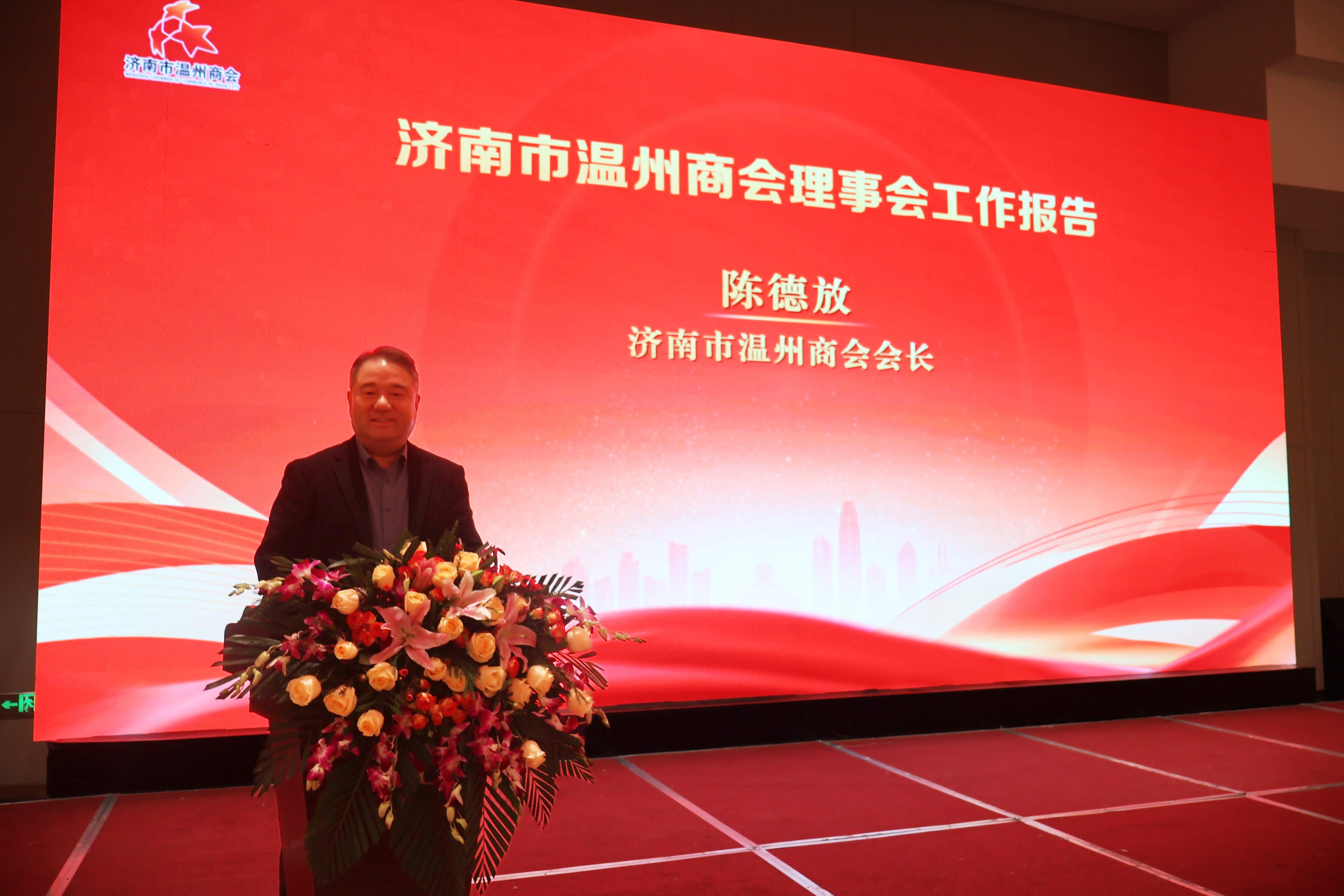 陈德放会长代表理事会作工作报告。他说,2025年济南市温州商会理事会在济温两地党委、政府的关心帮助和指导下,在全体会员的鼎力支持和配合下,坚持以党的二十大和二十届四中全会精神为指引,紧紧围绕打造“百年商会”这个目标,加强领导、团结奋进,凝聚力量、开拓创新,真抓实干、务求实效,各项工作实现了有序推进和稳步提升。特别在党建引领、文化宣传、活动开展、公益慈善等方面成绩尤为突出。2026年是我国“十五五”规划开局之年,希望全体会员要认清形势、领会政策、抢抓机遇、团结奋进,以强烈的责任意识、大局意识、创新意识,为开创商会工作新局面而共同努力,为推动济温两地的社会经济发展做出新的更大贡献!